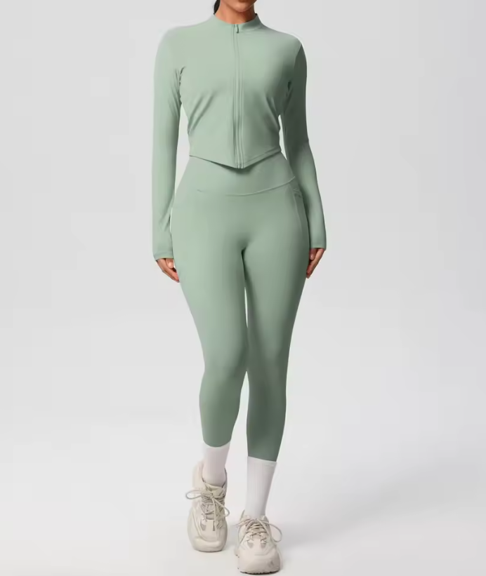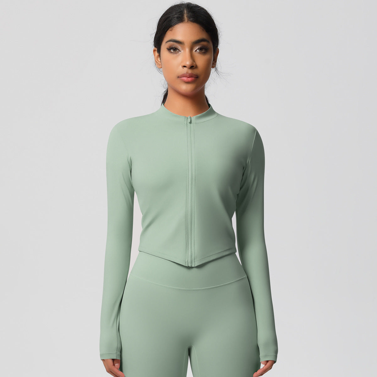 Lightweight full-zip jacket, slim fit, thumb-holes, quick-dry fabric.