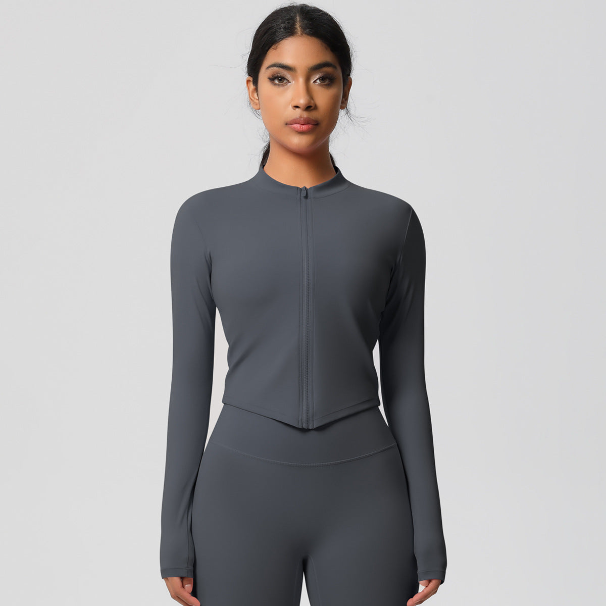 Lightweight full-zip jacket, slim fit, thumb-holes, quick-dry fabric.